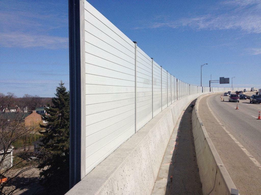 Highway noise barriers are built to mitigate the noise pollution caused by traffic and are typically made of concrete, brick, or other solid materials. When highway noise barriers come to mind, the image is the highway-facing surface while driving past them on the highway.