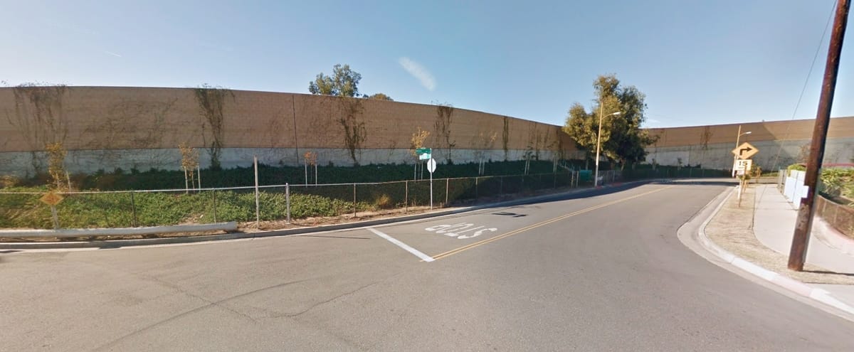 Running along the side of the street is this noise barrier shielding residents from the 710: